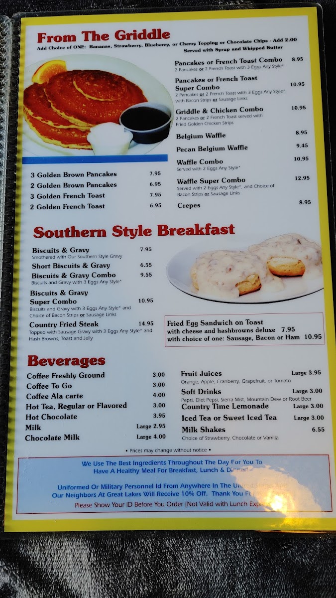 Start your day off right with the Southern Style Breakfast, featuring fluffy pancakes, golden eggs, and freshly baked biscuits topped with savory gravy. The breakfast classics are declared “topnotch” by many who have tasted them, making every morning feel like a special occasion.
