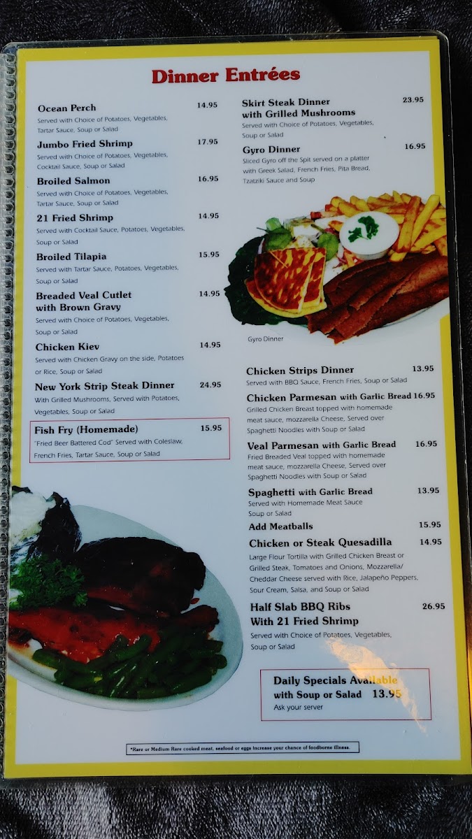 For an appetizer to whet your appetite, don’t miss the HomeStyle Onion Rings or Breaded Mushrooms, both priced around $7.95 to $8.95. And if you save room for dessert, the homemade cheesecake crafted from scratch will leave you swooning; it's a must-try that “is to die for,” as one satisfied customer remarked.